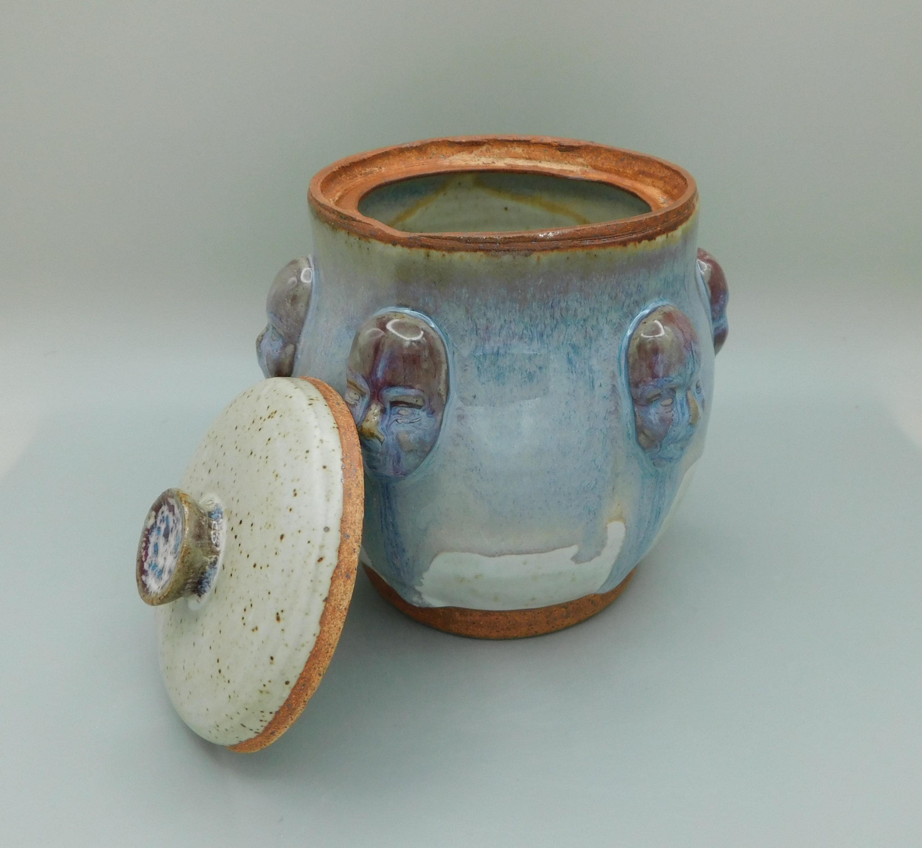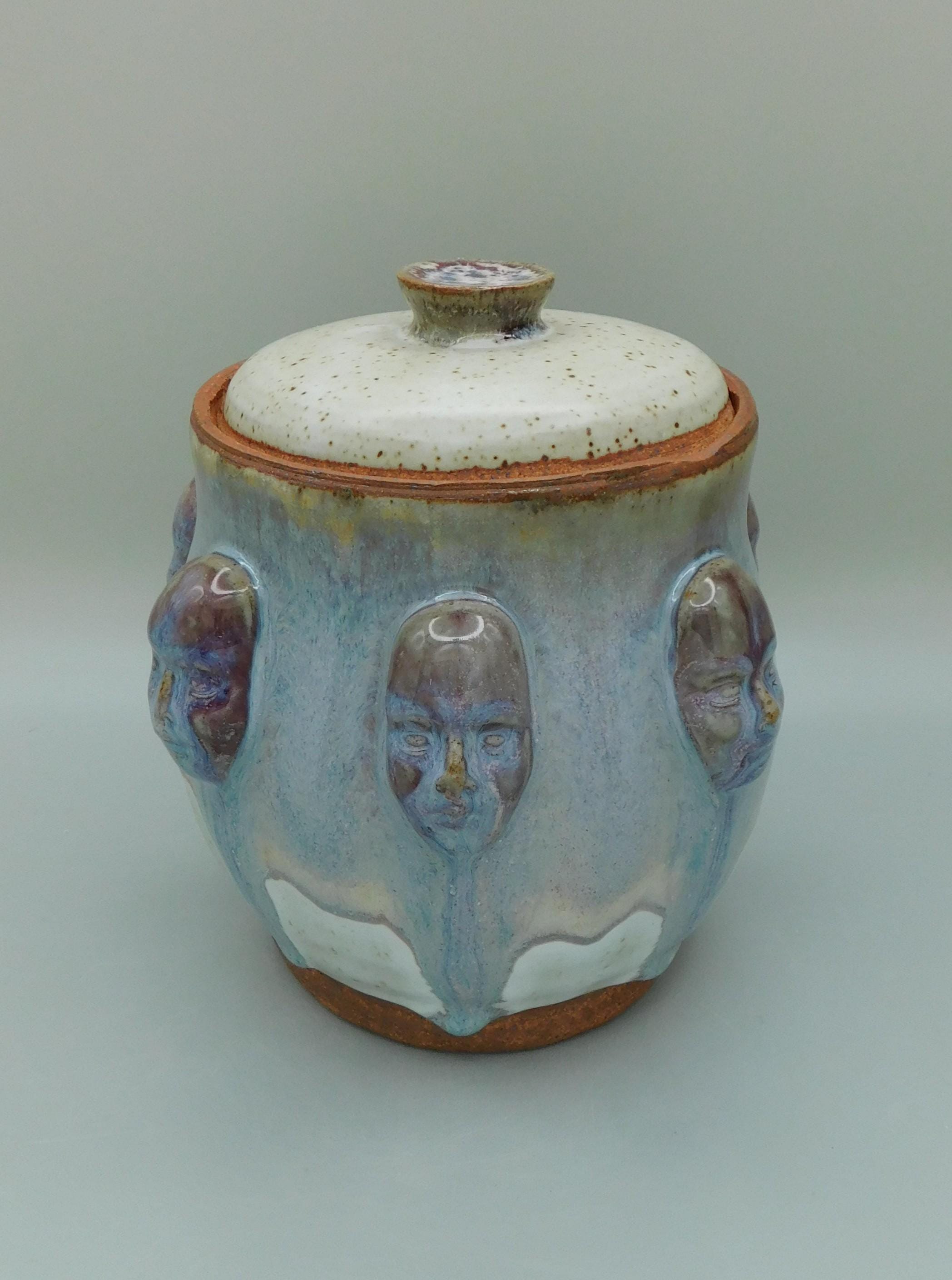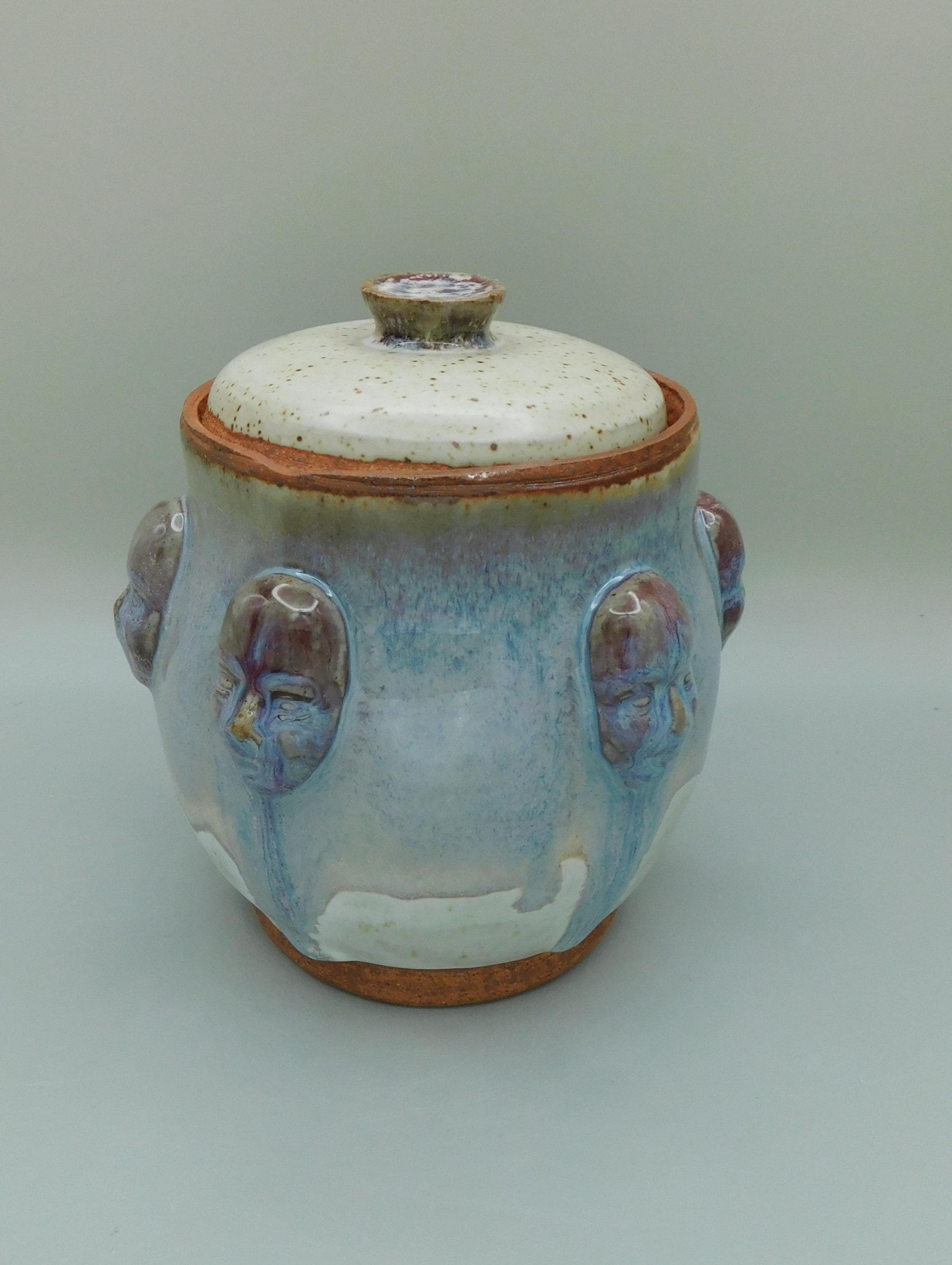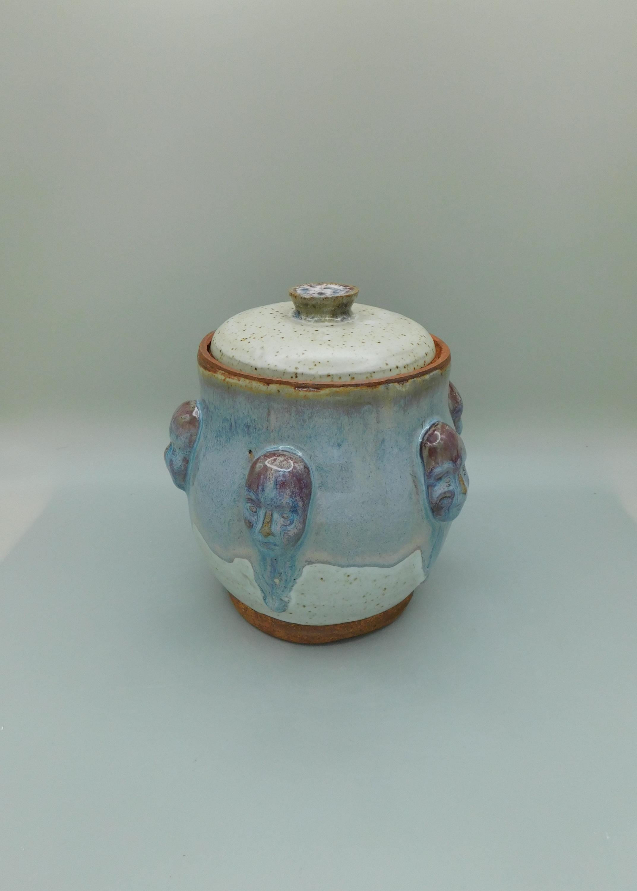 Blue and White Jar with Faces